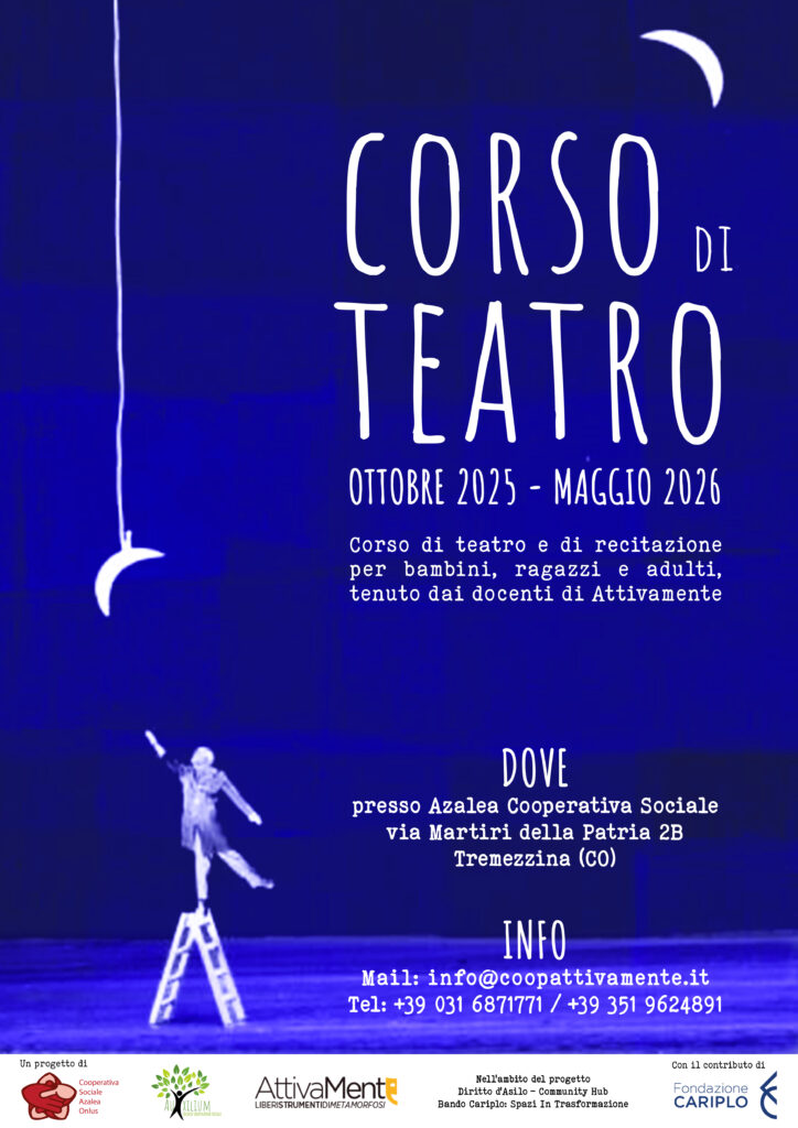 Scopri i nuovi Corsi di Teatro per bambini, ragazzi e adulti, tenuto dai docenti di AttivaMente Soc. Coop. Sociale, da Ottobre 2025 a Maggio 2026, con saggio finale.